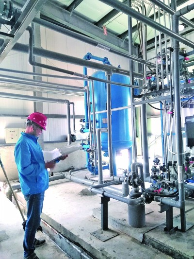 二〇一七年夏,趙有璟于一里坪鹽湖記錄設備試運行參數(shù)。光明圖片