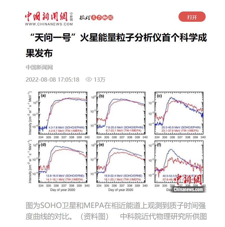 8月8日,記者從中科院近代物理研究所獲悉,由澳門(mén)科技大學(xué)、中國(guó)地質(zhì)大學(xué)(北京)、中科院近代物理研究所、蘭州空間技術(shù)物理研究所、中國(guó)科學(xué)技術(shù)大學(xué)、美國(guó)阿拉巴馬大學(xué)亨茨維爾分校和中科院國(guó)家空間科學(xué)中心組成的研究團(tuán)隊(duì)利用天問(wèn)一號(hào)火星能量粒子分析儀于近期獲得了首個(gè)科學(xué)成果,研究討論了基于該載荷在地火轉(zhuǎn)移軌道中觀測(cè)到的一個(gè)太陽(yáng)高能粒子事件。