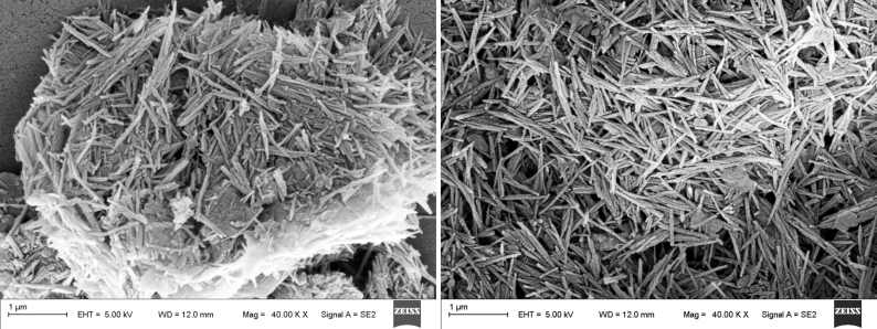 凹凸棒石原礦和棒晶束解離后的掃描電鏡照片(圖片來(lái)源:參考文獻(xiàn)[8])