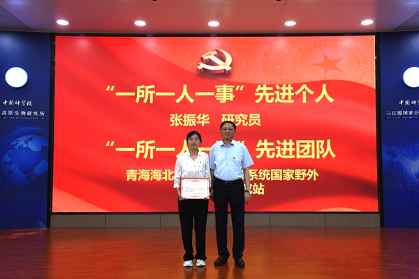 會議第二階段,在雄壯的國歌聲中,西北高原所召開慶祝建黨103周年表彰大會。楊勇剛宣讀了《中共中國科學(xué)院西北高原生物研究所委員會關(guān)于表彰先進(jìn)黨支部、優(yōu)秀共產(chǎn)黨員和優(yōu)秀黨務(wù)工作者的決定》。首先,所長陳世龍向?qū)O洪發(fā)同志頒發(fā)“光榮在黨50年”紀(jì)念章,代表所黨委向?qū)O洪發(fā)同志表示祝賀,并對他多年來為黨的事業(yè)盡心竭力、無私奉獻(xiàn)致以崇高的敬意。