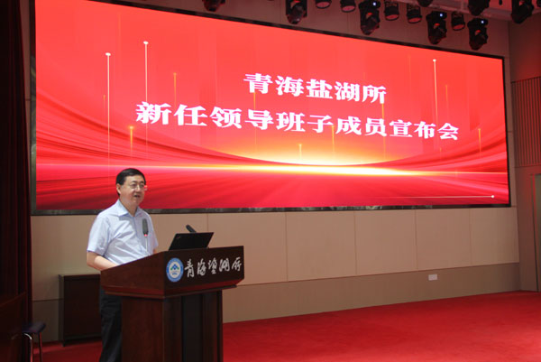 7月5日,中國科學(xué)院人事局副局長蔡宏志帶隊宣布中國科學(xué)院青海鹽湖研究所新一屆領(lǐng)導(dǎo)班子任命。青海鹽湖所新老領(lǐng)導(dǎo)班子成員、黨委委員、紀(jì)委委員、中層正職、黨支部書記及正高級科研人員等40余人參加了宣布會議。蘭州分院副院長、分黨組成員趙培慶出席并主持會議。