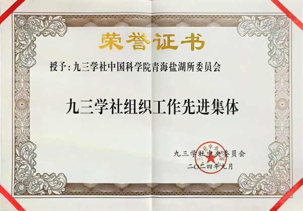 近期,經(jīng)九三學(xué)社第十五屆中央委員會第二十三、二十四次主席辦公會議研究決定,九三學(xué)社青海鹽湖所委員會榮獲2023至2024年九三學(xué)社組織工作先進(jìn)集體,也是青海省唯一入選該榮譽(yù)稱號的集體組織。