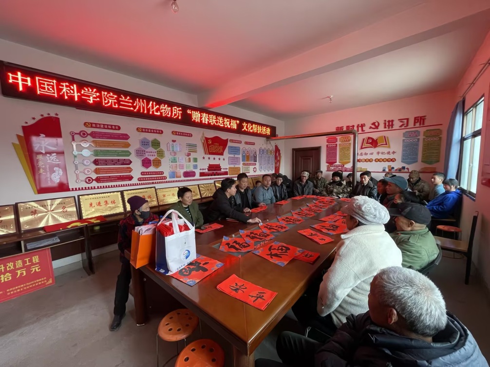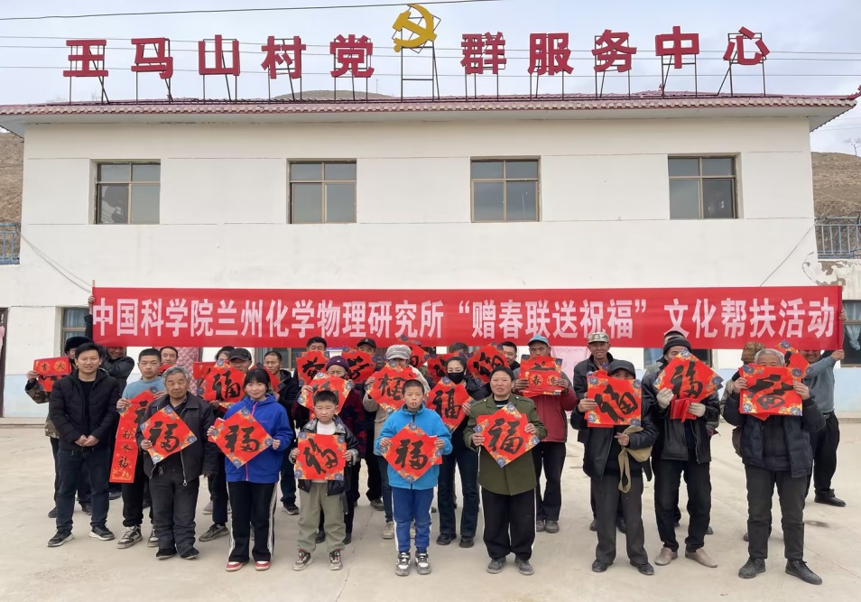 為豐富農(nóng)村精神文化生活,在2025年新春佳節(jié)來(lái)臨之際,1月23日下午,中國(guó)科學(xué)院蘭州化學(xué)物理研究所在會(huì)寧縣漢家岔鎮(zhèn)王馬山村開(kāi)展了“贈(zèng)春聯(lián) 送祝福”活動(dòng),為幫扶村老鄉(xiāng)們送去研究所的關(guān)心問(wèn)候和美好祝福。