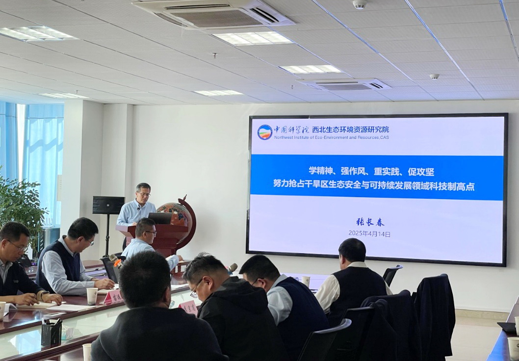 4月14日,中國科學(xué)院西北生態(tài)環(huán)境資源研究院干旱區(qū)生態(tài)安全與可持續(xù)發(fā)展全國重點(diǎn)實(shí)驗(yàn)室(簡稱干旱區(qū)生態(tài)安全重點(diǎn)實(shí)驗(yàn)室)黨總支召開黨員大會暨深入貫徹中央八項(xiàng)規(guī)定精神學(xué)習(xí)教育專題學(xué)習(xí)會。西北研究院院長馮起、黨委書記張長春應(yīng)邀參加會議并作指導(dǎo)。副院長、黨總支書記李宗省和黨總支委員、六個(gè)黨支部全體黨員參加會議。會議由黨總支組織委員左小安主持。