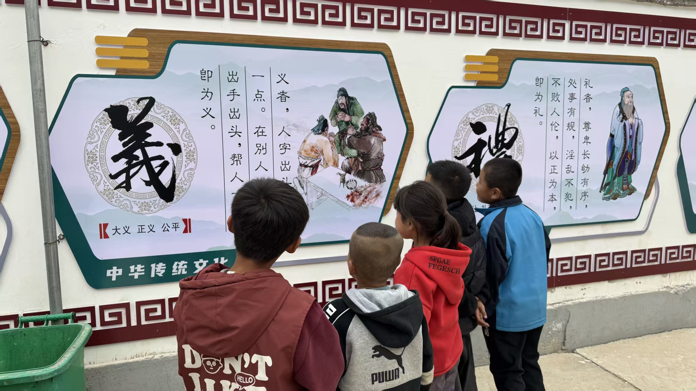 文化墻分多個版塊,分門別類,圖文并茂,從黨和國家教育方針政策介紹,到社會主義核心價值觀宣講,再到科學(xué)家精神、國學(xué)經(jīng)典、勸學(xué)寓言故事以及近代物理所幫扶工作紀(jì)實及活動掠影展示等,涉獵廣泛,內(nèi)容豐富,較好地發(fā)揮了文化墻集中展示、宣傳教育、價值引領(lǐng)等作用,為孩子們開啟了一扇以文化人窗口,搭建了一方交流互促平臺。