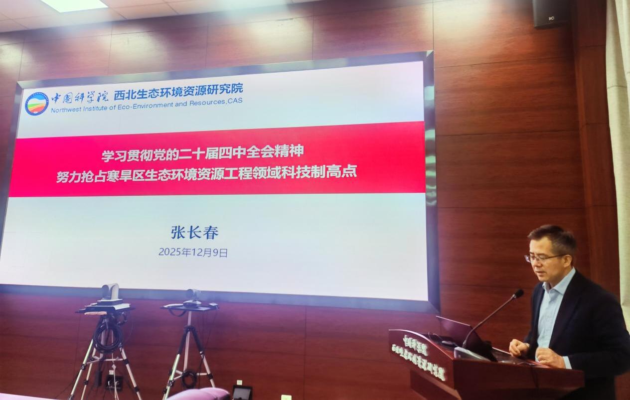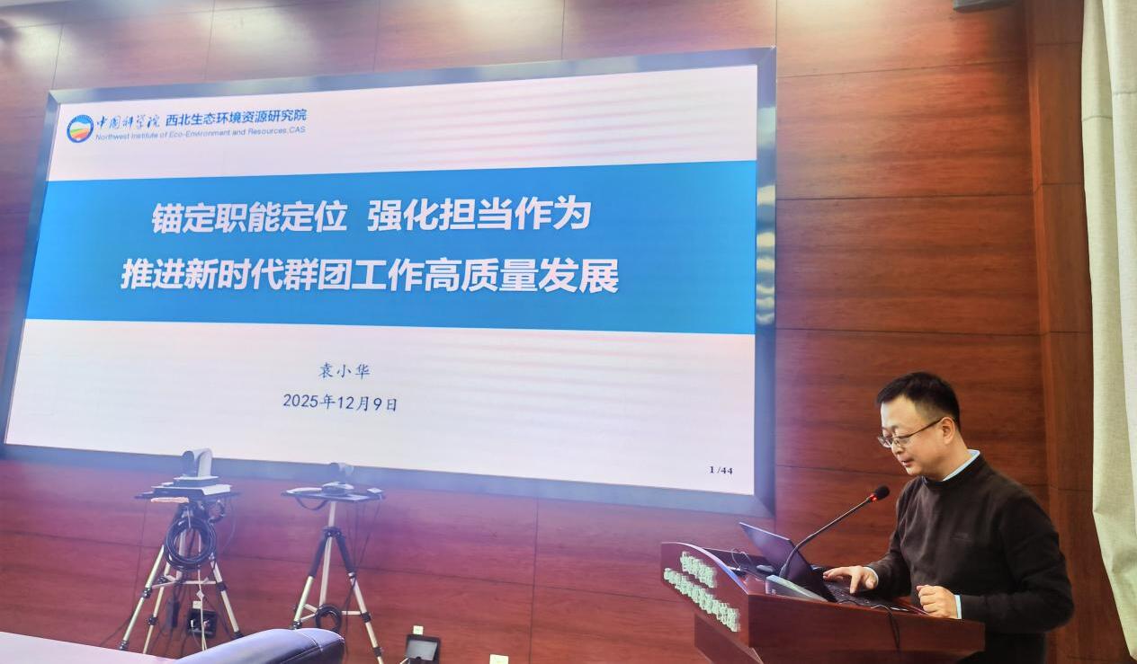 黨委書記張長春參加會議并作專題報告,領學了習近平總書記在黨的二十屆四中全會上的重要講話和全會精神,并結(jié)合個人學習思考,重點闡述了全會提出的“加快高水平科技自立自強,引領發(fā)展新質(zhì)生產(chǎn)力”戰(zhàn)略部署。他強調(diào),群團組織負責人要立足服務科技創(chuàng)新中心職責,從搭建創(chuàng)新交流平臺、強化青年人才培育、營造良好科研生態(tài)等關鍵維度發(fā)力,為搶占寒旱區(qū)生態(tài)環(huán)境資源工程領域科技制高點凝聚共識、匯聚力量。