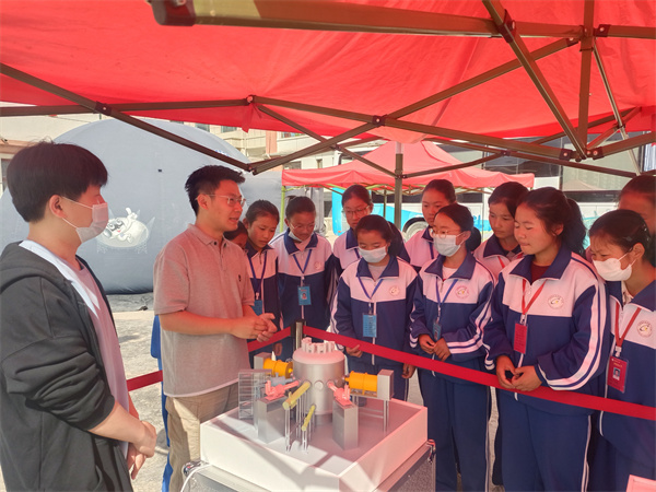 中國科學(xué)院近代物理研究所自幫扶和政縣以來,高度重視推進(jìn)教育幫扶、助力鄉(xiāng)村振興工作,近年來,在扎實(shí)開展產(chǎn)業(yè)幫扶、消費(fèi)幫扶的同時,通過組織結(jié)對關(guān)愛、科普活動進(jìn)村入校、邀請和政縣優(yōu)秀中小學(xué)生赴蘭州實(shí)地參觀研究所大科學(xué)裝置、贈送圖書、開展“微心愿”認(rèn)領(lǐng)等形式多樣的活動,用心用情用力開展教育幫扶,認(rèn)真貫徹落實(shí)習(xí)近平總書記關(guān)于教育幫扶系列重要講話精神。此次活動,近代物理研究所黨委辦公室與教育處協(xié)同精心組織,遴選10名研究生擔(dān)任科普志愿者,既是為中學(xué)生們帶來生動有趣講解,也是發(fā)揮他們自身一路求學(xué)奮進(jìn)的示范引領(lǐng)作用,激勵中學(xué)生們志存高遠(yuǎn),點(diǎn)燃夢想,更加用功學(xué)習(xí),將來造福家鄉(xiāng)。