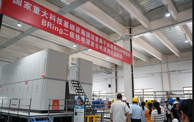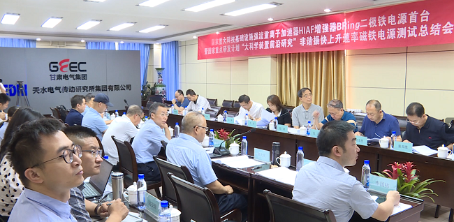 7月7日,國家重大科技基礎(chǔ)設(shè)施強流重離子加速器增強器 BRing 二極鐵電源首臺暨國家重點研發(fā)計劃“大科學裝置前沿研究”非諧振快上升速率磁鐵電源測試總結(jié)會在甘肅省天水市召開。由中國科學院近代物理研究所設(shè)計、天水電氣傳動研究所和四川英杰電氣有限公司為主生產(chǎn)的國際首臺大型非諧振全儲能快循環(huán)脈沖電源通過專家組現(xiàn)場測試。