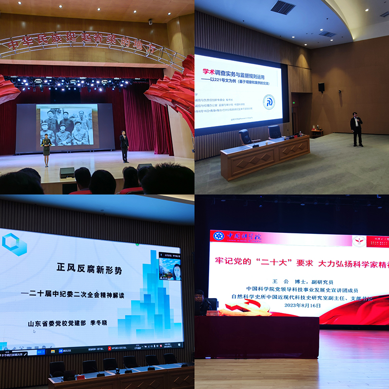 此次培訓(xùn)結(jié)合工作實際,特邀了山東省委黨校季冬曉教授對二十屆中紀委二次全會精神進行解讀,讓參訓(xùn)人員更加清晰地對全面從嚴治黨體系,特別是黨內(nèi)監(jiān)督的具體內(nèi)容有了更加深入的理解;中國科學(xué)院監(jiān)督與審計局科研誠信與倫理辦公室主任侯興宇作題為《學(xué)術(shù)調(diào)查實務(wù)與監(jiān)督規(guī)則運用》輔導(dǎo)報告,提升了在處理科研誠信案件中分析運用的能力;中國近現(xiàn)代科技史研究室副主任、中國科學(xué)院黨領(lǐng)導(dǎo)科技事業(yè)發(fā)展史宣講團隊成員、中國科學(xué)院自然科學(xué)史研究所副研究員王公作《牢記黨的二十大要求 大力弘揚科學(xué)家精神》專題講座,以梳理和講述中國科學(xué)史的發(fā)展進程為主線,將一代又一代無私奉獻,攻堅克難,以家國命運為己任的科學(xué)家事跡貫穿其中,逐步深入地闡述了科學(xué)家精神的內(nèi)涵及其時代價值。