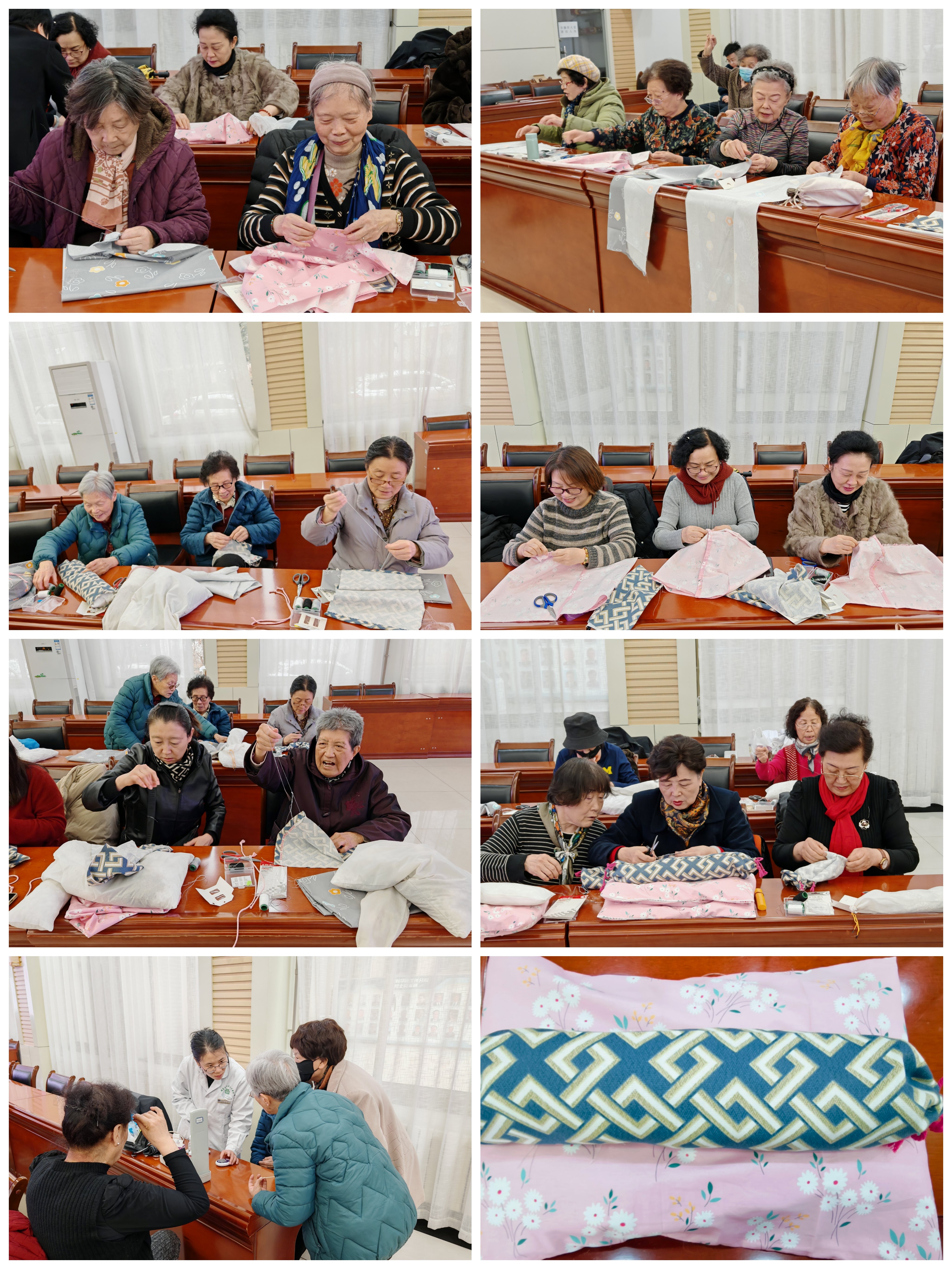 活動中,授課老師科普了藥枕“內(nèi)病外治”的中醫(yī)智慧,詳細(xì)介紹當(dāng)歸、艾草、合歡花等十余味中藥材的安神助眠功效,現(xiàn)場藥香裊裊,老同志們興致盎然。在制作中藥頸椎枕與頭枕環(huán)節(jié),老同志們化身“巧手匠人”,從選布折疊到一針一線縫合邊緣,預(yù)留返口;隨后將混合好的中藥原料填入棉麻枕芯,飛針走線間,藥香彌漫,老同志們或交流縫紉技巧,或回憶往日歲月,一針一線既縫制出貼合頸椎曲線的養(yǎng)生枕,更織就了傳統(tǒng)技藝與溫情關(guān)懷交融的匠心之作。