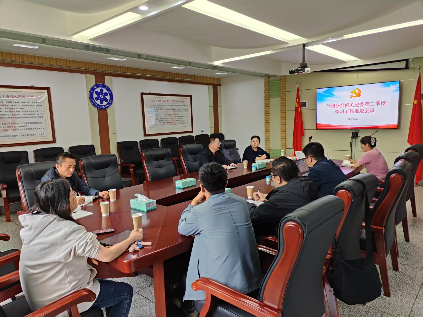 4月23日,中國科學院蘭州分院機關紀委召開二季度工作學習推進會議。蘭州分院紀檢組組長、機關黨委書記吳建剛,機關紀委委員、各黨支部紀檢委員及機關紀委辦公室相關人員參加會議。