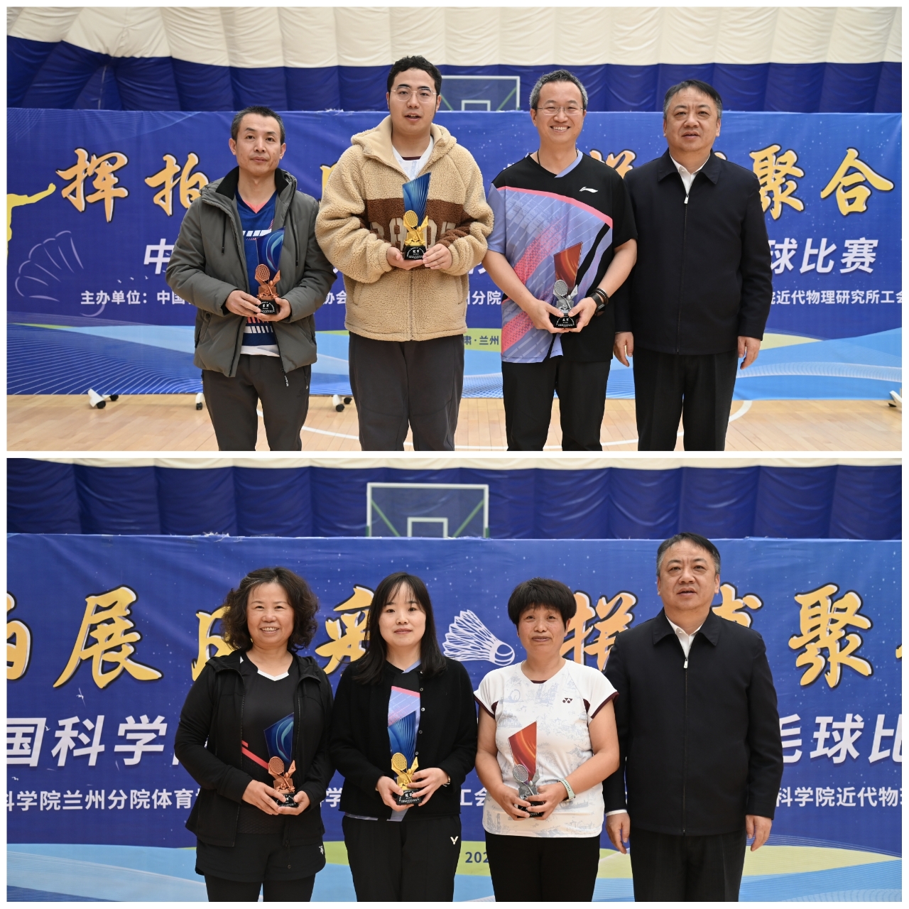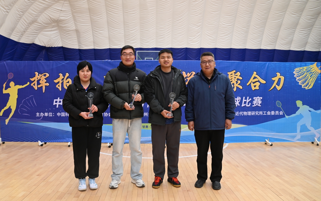 經(jīng)過激烈比拼,蘭州化物所、近代物理所、西北研究院代表隊分別獲混合團體賽冠軍、亞軍和季軍;蘭州分院機關(guān)、青海鹽湖所和西北高原所代表隊分別獲優(yōu)秀組織獎、團結(jié)拼搏獎和體育道德風尚獎。蘭州化物所文澤東、近代物理所封安輝和青海鹽湖所王懷有分別獲男子單打冠軍、亞軍和季軍;近代物理所吳曉霞、蘭州化物所楊恩芳和西北高原所陳曉澄分別獲女子單打冠軍、亞軍和季軍。