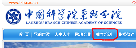 登陸中國科學(xué)院蘭州分院網(wǎng)站(http://m.zhetuxinxi.com/),點(diǎn)擊頁面上方的“教育培訓(xùn)”欄目,如圖
