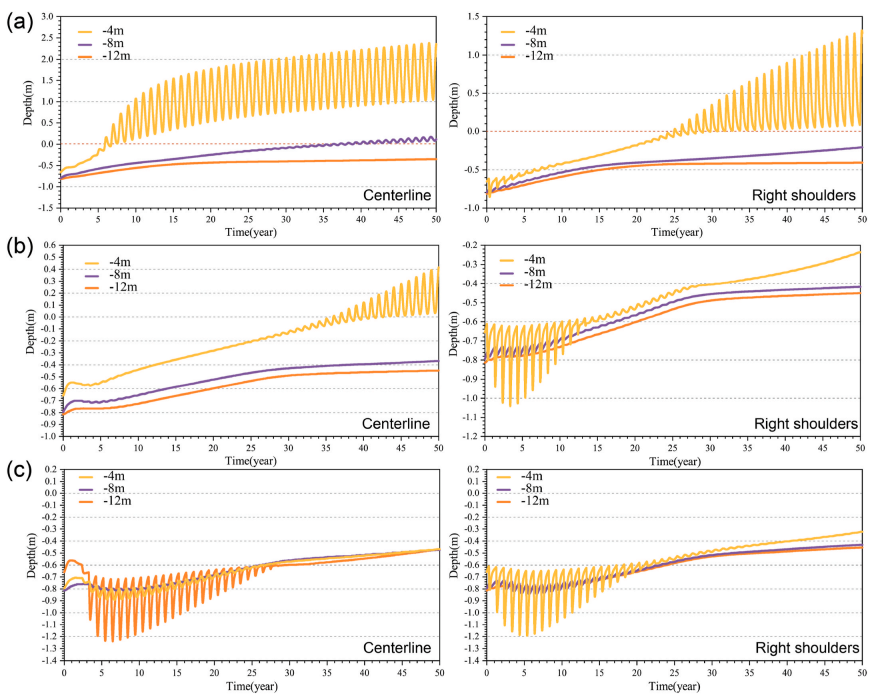 圖4?(a)UPE(b)THCPE和(c)ITCPE在不同深度處地溫變化