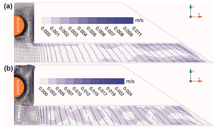 圖5?ITCPE結(jié)構(gòu)中多孔介質(zhì)層冷暖季對流?(a)暖季?(b)冷季