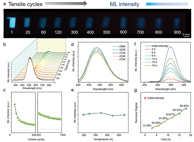 摩擦/力致發(fā)光材料能將機械力學(xué)信號直接轉(zhuǎn)化成光信號,在結(jié)構(gòu)健康監(jiān)測、生物力學(xué)傳感、人工智能、人機交互等領(lǐng)域具有重要的應(yīng)用價值。然而,現(xiàn)有摩擦/力致發(fā)光材料普遍存在難以自恢復(fù)、重復(fù)性差以及易受環(huán)境干擾等問題,嚴(yán)重限制了其實際應(yīng)用。