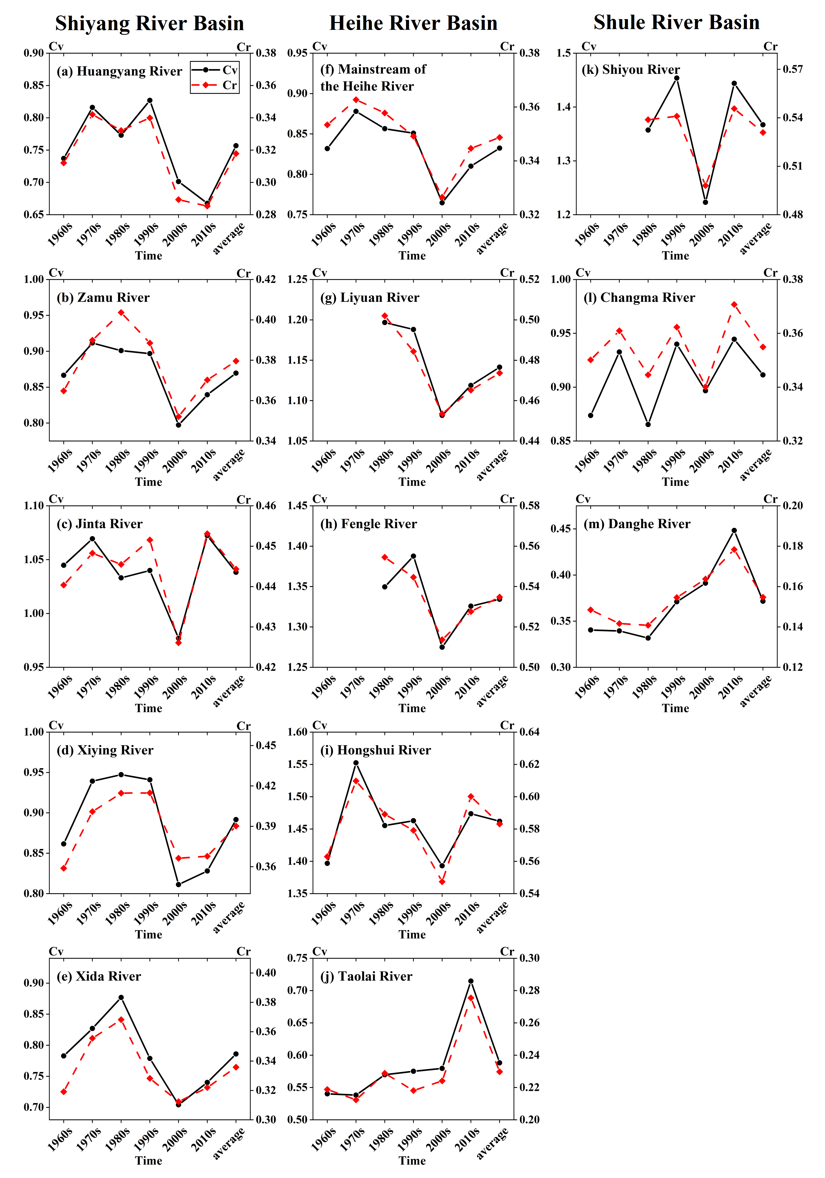 基于上述科學(xué)問題,中國(guó)科學(xué)院西北生態(tài)環(huán)境資源研究院科研團(tuán)隊(duì)對(duì)河西三大流域13條河的出山徑流年內(nèi)分配變化規(guī)律進(jìn)行研究,并對(duì)比分析其影響因素。目前研究干旱區(qū)徑流年內(nèi)、年際變化及其影響因素的方法多樣,本文綜合應(yīng)用不均勻系數(shù)、完全調(diào)節(jié)系數(shù)、集中度和集中期、偏度系數(shù)和峰度系數(shù)等方法對(duì)石羊河、黑河和疏勒河流域徑流年內(nèi)變化特征進(jìn)行分析,比較其時(shí)空差異,探究河西走廊內(nèi)陸河流域亞區(qū)的邊界和徑流模式及其變化的時(shí)間節(jié)點(diǎn)等。