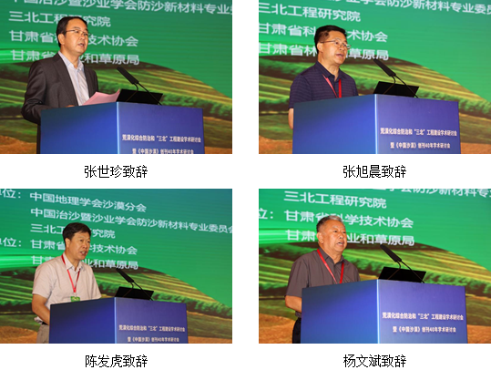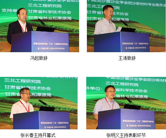 大會由中國地理學(xué)會沙漠分會、中國治沙暨沙業(yè)學(xué)會防沙新材料專業(yè)委員會、三北工程研究院共同主辦,甘肅省科學(xué)技術(shù)協(xié)會、甘肅省林業(yè)和草原局支持,中國科學(xué)院西北生態(tài)環(huán)境資源研究院、干旱區(qū)生態(tài)安全與可持續(xù)發(fā)展重點(diǎn)實(shí)驗室、甘肅省科學(xué)技術(shù)期刊學(xué)會和《中國沙漠》編輯部共同承辦。西北研究院黨委書記張長春主持開幕式。