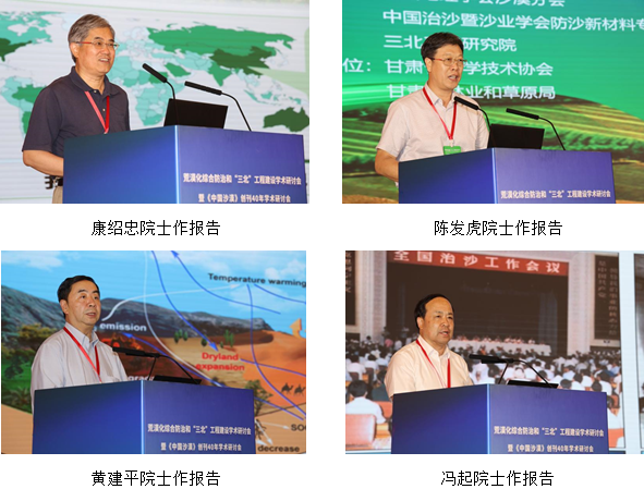研討會以“荒漠化綜合防治和‘三北’工程建設(shè)”為主題,旨在深入學(xué)習(xí)貫徹落實(shí)習(xí)近平總書記關(guān)于加強(qiáng)荒漠化綜合防治和推進(jìn)生態(tài)工程建設(shè)重要講話精神,推動山水林田湖草沙一體化保護(hù)和系統(tǒng)治理,總結(jié)和交流相關(guān)研究成果,促進(jìn)人與自然和諧共生。大會邀請了丁一匯、姚檀棟、侯立安、鄭曉靜、康紹忠、陳發(fā)虎、黃建平、馮起、方小敏、朱教君等10位院士和王濤、李新榮、楊小平、董治寶、陳亞寧、鹿化煜、屈建軍、楊文斌等8位專家作主題報告,并組織了14個分論壇的專題報告。南志標(biāo)、賴遠(yuǎn)明、楊志峰院士參會??凳啦?、曹廣超、盧琦、李廣、勾曉華、楊興國分別主持大會主題報告。與會專家學(xué)者圍繞荒漠化綜合防治和“三北”工程建設(shè)的新理念、新技術(shù),深入探討了荒漠化地區(qū)氣候變化與生態(tài)系統(tǒng)響應(yīng)、荒漠生態(tài)修復(fù)與治理、全球氣候變化對西北暖濕化趨勢的影響等前沿問題。