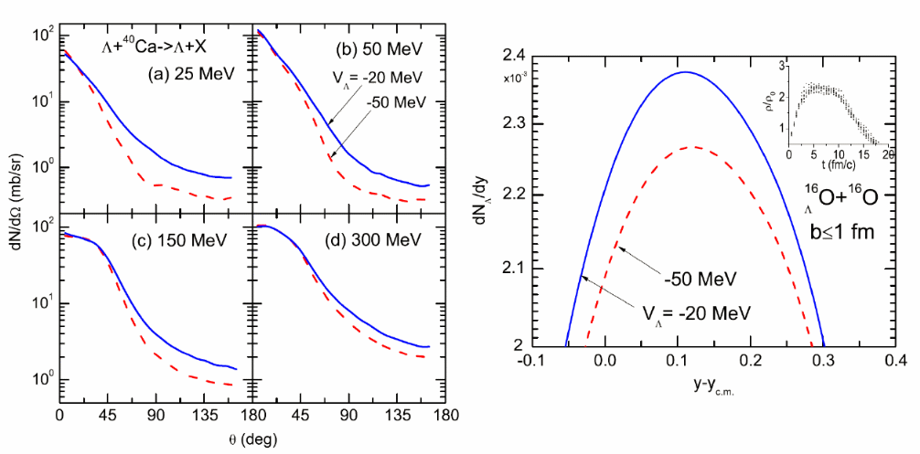 研究人員還基于考慮平均場的核內(nèi)級聯(lián)模型及熱剩余退激模型,率先提出利用超子、超核次級束流來研究超子-核子相互作用及高重子密度下的超子勢,通過測量反應(yīng)中發(fā)射的超子提取常密、高密核物質(zhì)中的超子勢。這種探測研究超子勢的方法最大限度地減少了各種理論的不確定性。此外,研究還討論了相關(guān)實(shí)驗(yàn)的可行性。