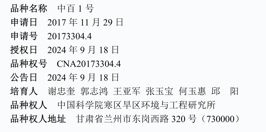 近日,中國科學院西北生態(tài)環(huán)境資源研究院蘭州生態(tài)農(nóng)業(yè)試驗研究站(簡稱“蘭州農(nóng)業(yè)站”)謝忠奎研究員團隊自主選育的“中百1號”蘭州百合新品種上榜農(nóng)業(yè)農(nóng)村部2024年第826號授予植物新品種權(quán)名單。這是我國首個被授予植物新品種權(quán)的優(yōu)質(zhì)高產(chǎn)食用百合品種,同時也是西北研究院首次獲植物品種權(quán)授權(quán)。