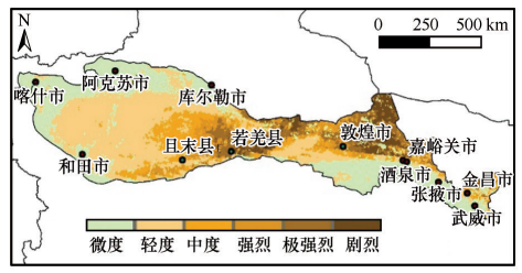 圖1 研究區(qū)風(fēng)蝕強(qiáng)度空間分布