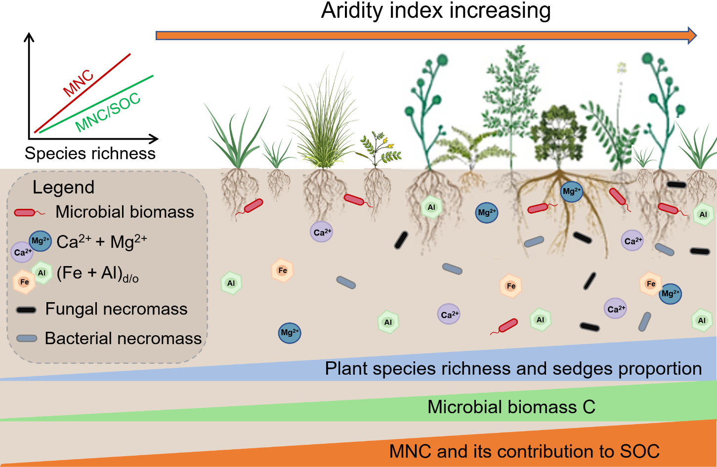 干旱度指數(shù)對植物物種豐富度、微生物量、微生物殘體碳及其對土壤有機碳(SOC)貢獻的影響