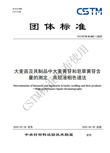 2025年2月28日,由中國(guó)科學(xué)院西北高原生物研究所、青海省藥品檢驗(yàn)檢測(cè)院、西寧海關(guān)技術(shù)中心和青海金麥杞生物科技有限公司聯(lián)合完成的中國(guó)材料與試驗(yàn)團(tuán)體標(biāo)準(zhǔn)委員會(huì)(CSTM)團(tuán)體標(biāo)準(zhǔn)《大麥苗及其制品中大麥黃苷和皂草黃苷含量的測(cè)定 高效液相色譜法》(T/CSTM 01402—2025)正式發(fā)布。該標(biāo)準(zhǔn)為基于大麥苗(青稞苗)的大健康產(chǎn)品的質(zhì)量控制和技術(shù)創(chuàng)新提供了科學(xué)依據(jù)和規(guī)范化指導(dǎo)。標(biāo)準(zhǔn)詳細(xì)規(guī)定了使用高效液相色譜法測(cè)定大麥苗及其制品中活性成分大麥黃苷和皂草黃苷含量的方法,包括樣品的前處理、色譜條件的優(yōu)化、校準(zhǔn)曲線的繪制、數(shù)據(jù)的處理、以及測(cè)量不確定度的評(píng)估等關(guān)鍵環(huán)節(jié)。標(biāo)準(zhǔn)還特別強(qiáng)調(diào)了在實(shí)際檢測(cè)中應(yīng)根據(jù)樣品的特性進(jìn)行個(gè)性化的調(diào)整和優(yōu)化,以確保檢測(cè)結(jié)果的準(zhǔn)確性和可靠性。此外,標(biāo)準(zhǔn)還提供了詳細(xì)的試驗(yàn)報(bào)告模板,包括識(shí)別樣品、實(shí)驗(yàn)室和試驗(yàn)日期所需的全部信息,以及引用標(biāo)準(zhǔn)、結(jié)果表示和異?,F(xiàn)象記錄等內(nèi)容,為檢測(cè)結(jié)果的完整性和可追溯性提供了有力保障。