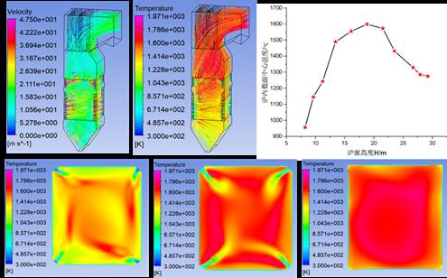 近期,團(tuán)隊(duì)在華能蘭州西固熱電有限公司和西安熱工研究院的大力支持下,首先完成了165MW機(jī)組的數(shù)值模擬,結(jié)果表明,四角切圓型鍋爐爐內(nèi)燃燒煙氣溫度分布曲線呈現(xiàn)正態(tài)-拋物線狀態(tài),中間燃燒區(qū)域溫度高,爐底及爐膛出口溫度偏低,最高燃燒溫度始終分布在主燃燒與 SOFA之間,因此重點(diǎn)噴涂區(qū)域?yàn)橹魅紵齾^(qū)域和 SOFA 區(qū)域。