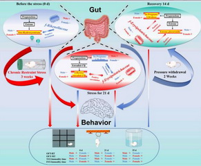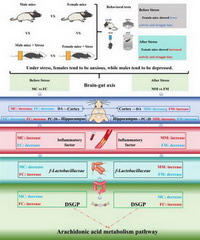 雌雄小鼠應激腦-腸軸調(diào)控差異示意圖