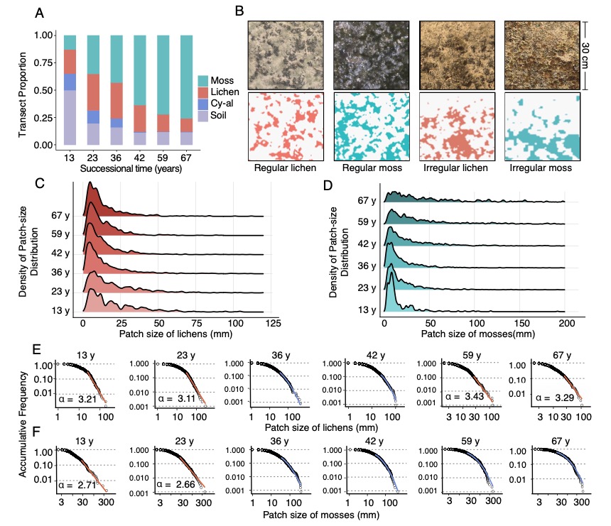 該研究不僅揭示了生物結(jié)皮的自組織空間模式及其動態(tài)變化,還強(qiáng)調(diào)了生物結(jié)皮在干旱地區(qū)生態(tài)系統(tǒng)功能和穩(wěn)定性中的重要作用。研究結(jié)果還為理解生物結(jié)皮在不同演替階段的生態(tài)角色提供了新的視角。