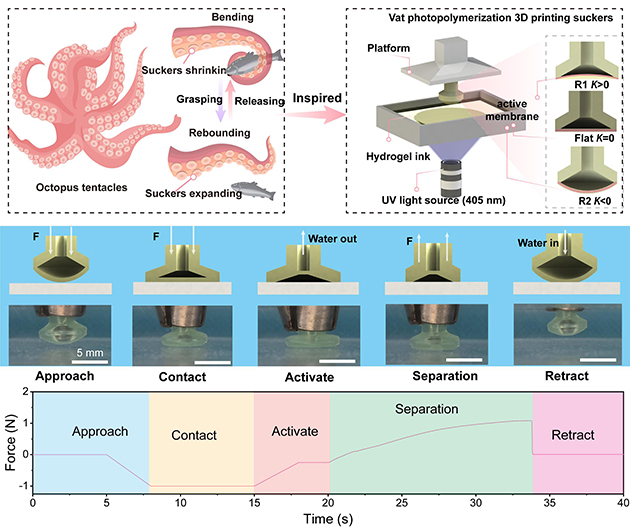 蘭州化物所3D打印水凝膠基仿章魚自適應(yīng)粘/脫附吸盤研究獲新進展