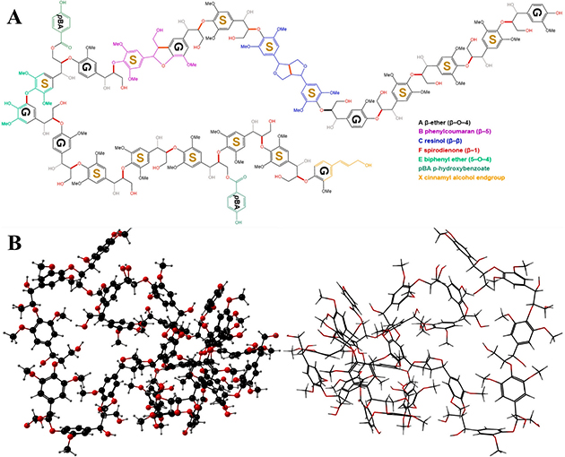 圖 1. 果實木質素的二維(A)和三維(B)結構