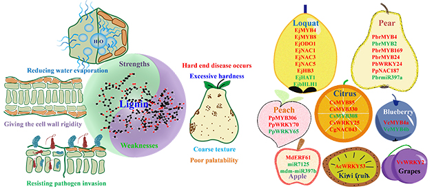 木質素作為植物次生細胞壁的關鍵成分,在果實生長發(fā)育與采后保鮮中發(fā)揮著雙重作用。適量的木質素可為果實提供機械支撐、增強抗逆性并延長貨架期,但過量積累則會導致果實質地粗糙、口感變差,嚴重影響其商品價值。因此,系統(tǒng)解析果實木質素的結構功能及調控機制,對果實品質改良與產(chǎn)業(yè)升級具有重要意義。