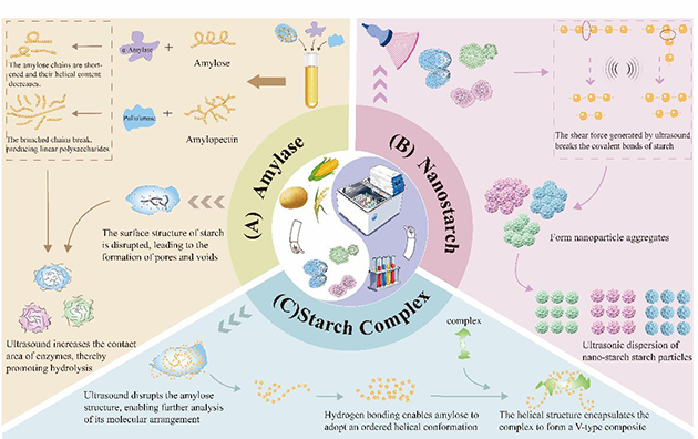 近日,中國科學(xué)院蘭州化學(xué)物理研究所天然藥物與化學(xué)測量研究中心食品化學(xué)與安全檢測團隊發(fā)表了關(guān)于抑制淀粉回生方面的綜述文章,系統(tǒng)總結(jié)了超聲波輔助淀粉改性領(lǐng)域的最新研究進展,為綠色、高效的淀粉功能化改性技術(shù)提供了重要參考。該論文深入探討了超聲波參數(shù)優(yōu)化、結(jié)構(gòu)-性能關(guān)系解析及協(xié)同改性策略,展現(xiàn)了超聲波技術(shù)在淀粉改性領(lǐng)域的廣闊前景。
