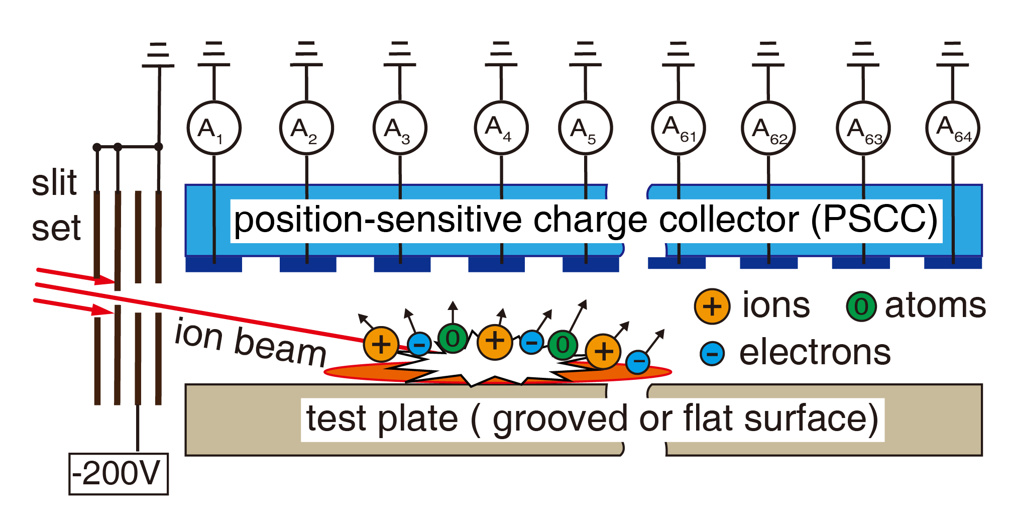 圖1:濺射離子電流分布測量。二次離子的電荷搬運是導致導向電場過早飽和的主要原因;溝槽結構可有效抑制二次離子的電荷搬運