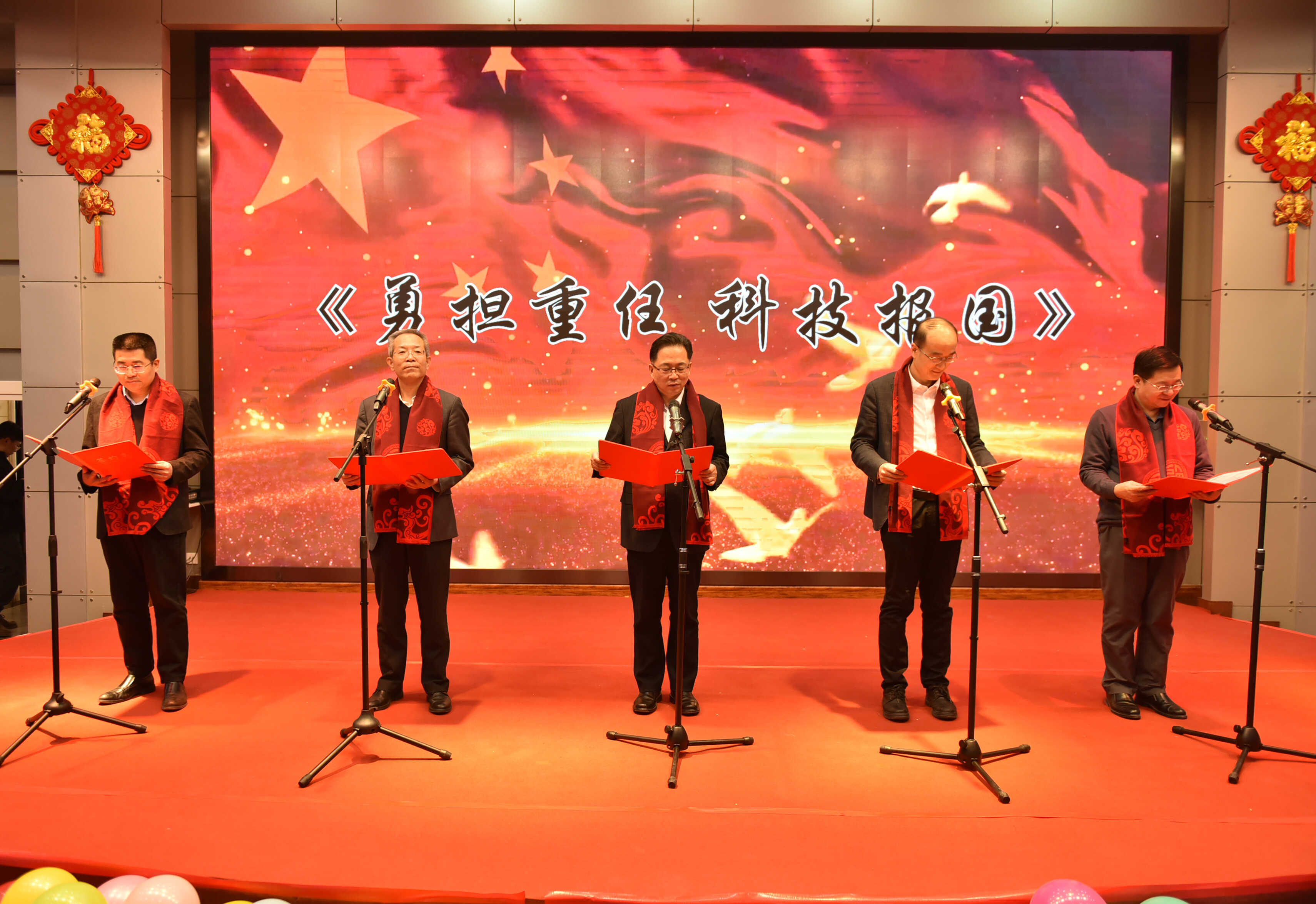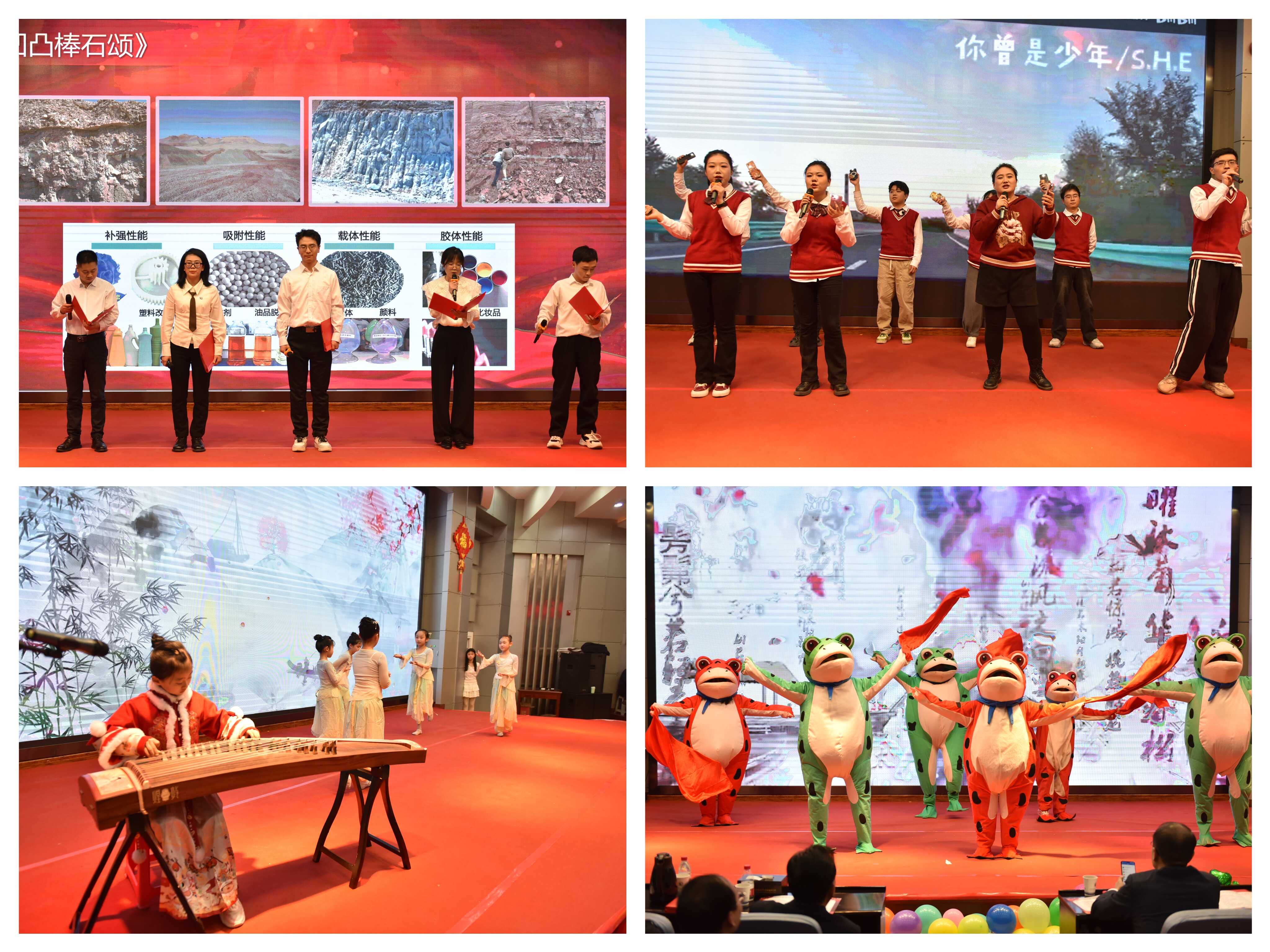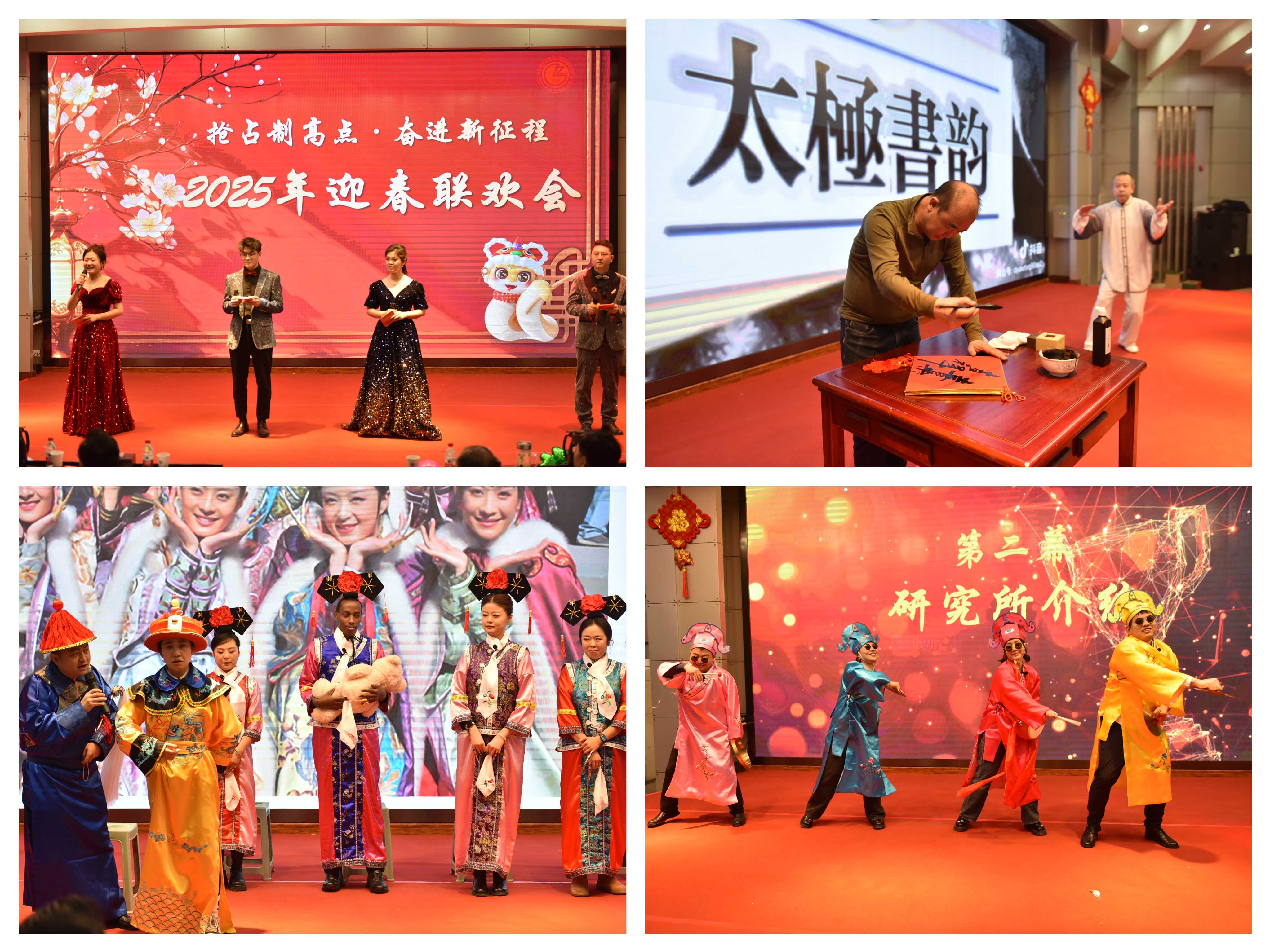 聯(lián)歡會(huì)在舞蹈《張燈結(jié)彩》歡快的節(jié)奏中拉開序幕。所領(lǐng)導(dǎo)班子全體成員共同朗誦的詩歌《勇?lián)厝?科技報(bào)國》高亢激昂,深情回顧了研究所六十余年奮斗歷程與輝煌成就,共同擘畫了未來發(fā)展的美好藍(lán)圖,充分展現(xiàn)了蘭州化物所人再赴新征程的百倍信心。退休老同志們表演的合唱《走向復(fù)興》《革命人永遠(yuǎn)是年輕》整齊嘹亮,表達(dá)了老一輩科研工作者扎根西部、無怨無悔,開拓奮進(jìn)、科技報(bào)國的壯志情懷。小品《后宮甄嬛·科研傳》、三句半《勁在科研》則以幽默詼諧的方式再現(xiàn)了科研工作中的樂趣與故事。合唱《如愿》表達(dá)出對祖國的美好祝愿。書法與太極拳表演《太極書韻》剛?cè)岵?jì)、行云流水,展示了中華文化的魅力。舞蹈與古箏演奏《漁舟唱晚》展現(xiàn)了科苑少年的自信與風(fēng)采。獨(dú)唱《今天》《卓瑪》歌聲悠揚(yáng)婉轉(zhuǎn),贏得現(xiàn)場陣陣掌聲,詩朗誦《凹凸棒石頌》抒發(fā)了青年科技工作者的激情與信念?!稛o名的人》《悲傷蛙不悲傷》《唱響世界,奔跑少年》等舞蹈和歌曲串燒節(jié)目充分展現(xiàn)出廣大研究生青春昂揚(yáng)、蓬勃向上的絢麗風(fēng)采。一個(gè)個(gè)精彩的節(jié)目將聯(lián)歡會(huì)氣氛一次次推向高潮,中間穿插的游戲和抽獎(jiǎng)環(huán)節(jié),更是讓全場觀眾體驗(yàn)到層出不窮的驚喜。