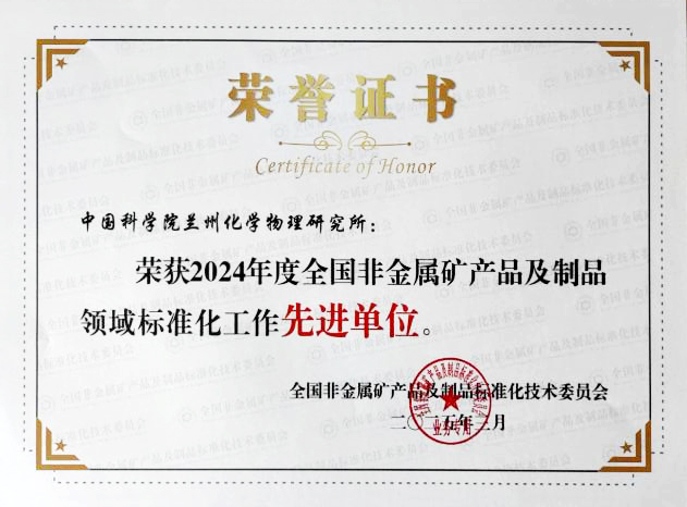 蘭州化物所獲2024年度全國非金屬礦產品及制品領域標準化工作先進單位