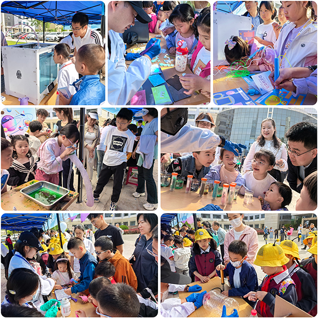 科學實驗嗨廣場精心設置了“憤怒的小河豚”“掌心里的神奇火焰”“奇妙的3D打印”“點水成膠”“神奇的摩擦發(fā)光”“水中花園”“‘瓶’空造云”“趣味泡泡龍”“多彩多樣”等科學互動小實驗和化學元素對對碰、薯光超腦戰(zhàn)互動游戲。讓學生在“像科學家一樣思考”的過程中,理解科學并非一成不變的真理,從而真正愛上“探索未知”的樂趣。