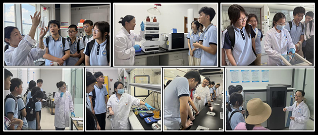 師生們還參觀了研究所的核心科研陣地。在科研人員的專業(yè)講解和引導(dǎo)下,大家依次探訪了大型儀器分析中心、催化新工藝實(shí)驗(yàn)室、碳材料實(shí)驗(yàn)室、可再生碳資源催化實(shí)驗(yàn)室以及二氧化碳多能耦合轉(zhuǎn)化實(shí)驗(yàn)室。同學(xué)們首次近距離接觸了核磁共振波譜儀、高分辨質(zhì)譜儀、光電子能譜儀、X射線衍射儀等“科學(xué)重器”。科研人員形象地比喻它們是科學(xué)家的“眼睛”和“手”,深入淺出地講解了這些精密儀器如何在微觀層面“看清”催化材料的奧秘,解析化學(xué)反應(yīng)的歷程??蒲腥藛T還展示了催化化學(xué)如何像魔法般加速反應(yīng)、提高效率,特別是在碳資源可持續(xù)循環(huán)利用和環(huán)境污染治理等國家重大戰(zhàn)略需求領(lǐng)域的突破性應(yīng)用。同學(xué)們了解了研究所如何利用催化技術(shù),將二氧化碳變廢為寶,轉(zhuǎn)化為有用的燃料和化學(xué)品;見識了形形色色的碳材料如何從實(shí)驗(yàn)室走向生活,改變著我們的世界。通過鮮活的案例,讓書本上的概念變得觸手可及,也讓同學(xué)們深刻體會到化學(xué)“道法自然”、服務(wù)人類發(fā)展的強(qiáng)大力量。