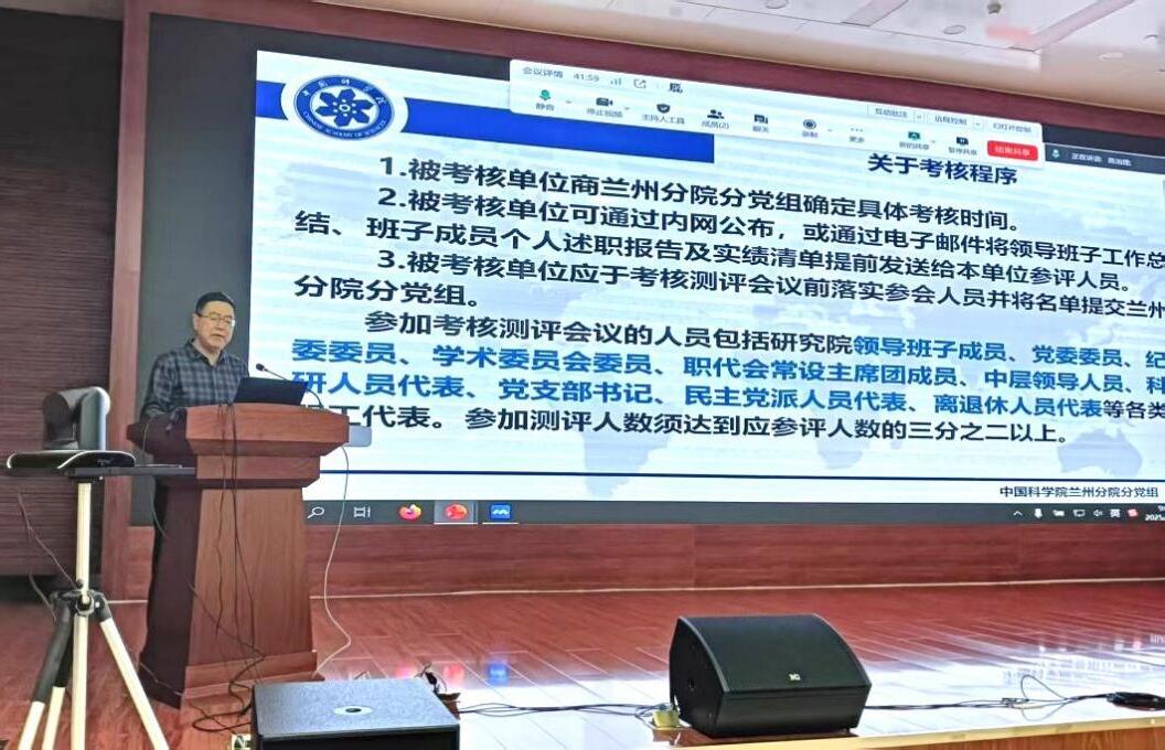 12月29日,中國科學(xué)院西北生態(tài)環(huán)境資源研究院組織召開領(lǐng)導(dǎo)班子與領(lǐng)導(dǎo)人員2025年度考核工作會(huì)議。西北研究院院長馮起,黨委書記、副院長張長春,副院長張明義,紀(jì)委書記袁小華,副院長李宗省;以及黨委委員、紀(jì)委委員、學(xué)術(shù)委員會(huì)委員、職代會(huì)代表、中層干部、科研人員代表、黨支部(總支)書記、民主黨派人員代表、離退休人員代表以及全體職工代表參加會(huì)議。中國科學(xué)院蘭州分院分黨組成員、紀(jì)檢組組長、系統(tǒng)單位紀(jì)委書記吳建剛及考核組成員到會(huì)指導(dǎo)。會(huì)議由李宗省主持。