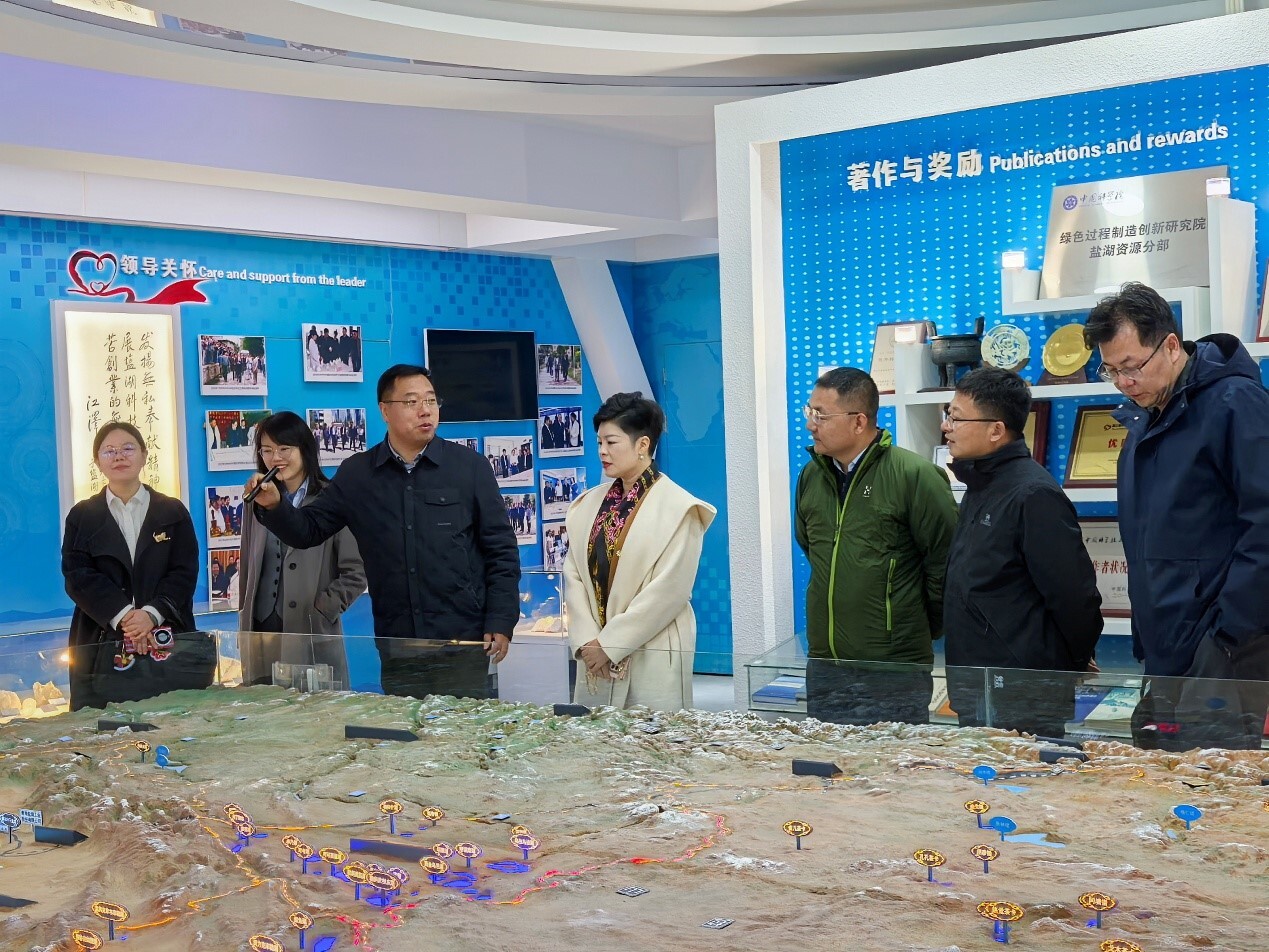 調(diào)研組一行首先參觀了鹽湖科技成果展覽室,系統(tǒng)了解青海鹽湖資源開發(fā)利用領(lǐng)域的系列科技創(chuàng)新成果,深入認(rèn)識青海鹽湖所在推動(dòng)我國鹽湖科技事業(yè)進(jìn)步、支撐地方產(chǎn)業(yè)高質(zhì)量發(fā)展中的重要作用與突出貢獻(xiàn)。