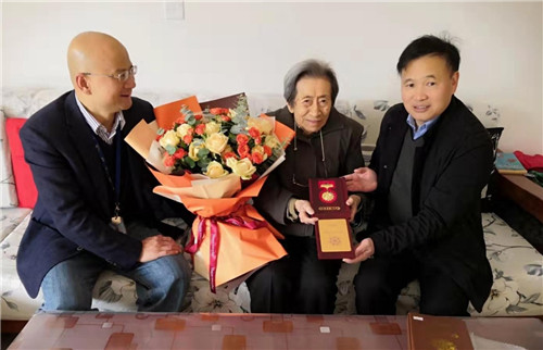 今年是新中國(guó)成立70周年,也是中國(guó)科學(xué)院建院70周年。為進(jìn)一步褒揚(yáng)老同志為我院創(chuàng)建發(fā)展改革做出的歷史性貢獻(xiàn),弘揚(yáng)老同志在我院長(zhǎng)期實(shí)踐中形成的優(yōu)良傳統(tǒng)和科學(xué)精神,表彰他們的歷史功勛,彰顯他們的榮譽(yù)地位,日前,中國(guó)科學(xué)院黨組為建院之時(shí)就在我院工作、伴隨我院走過70年輝煌歷程的離退休老同志頒發(fā)“光榮在院70年”紀(jì)念章。11月13日上午,受中國(guó)科學(xué)院黨組委托,蘭州分院分黨組書記、副院長(zhǎng)張懷剛專門看望慰問了近代物理研究所退休干部王樹芬,并代表院黨組向她頒發(fā)了“光榮在院70年”紀(jì)念章。近代物理研究所黨委副書記、紀(jì)委書記袁平及蘭州分院和近代物理研究所離退休辦公室負(fù)責(zé)人一同參加。