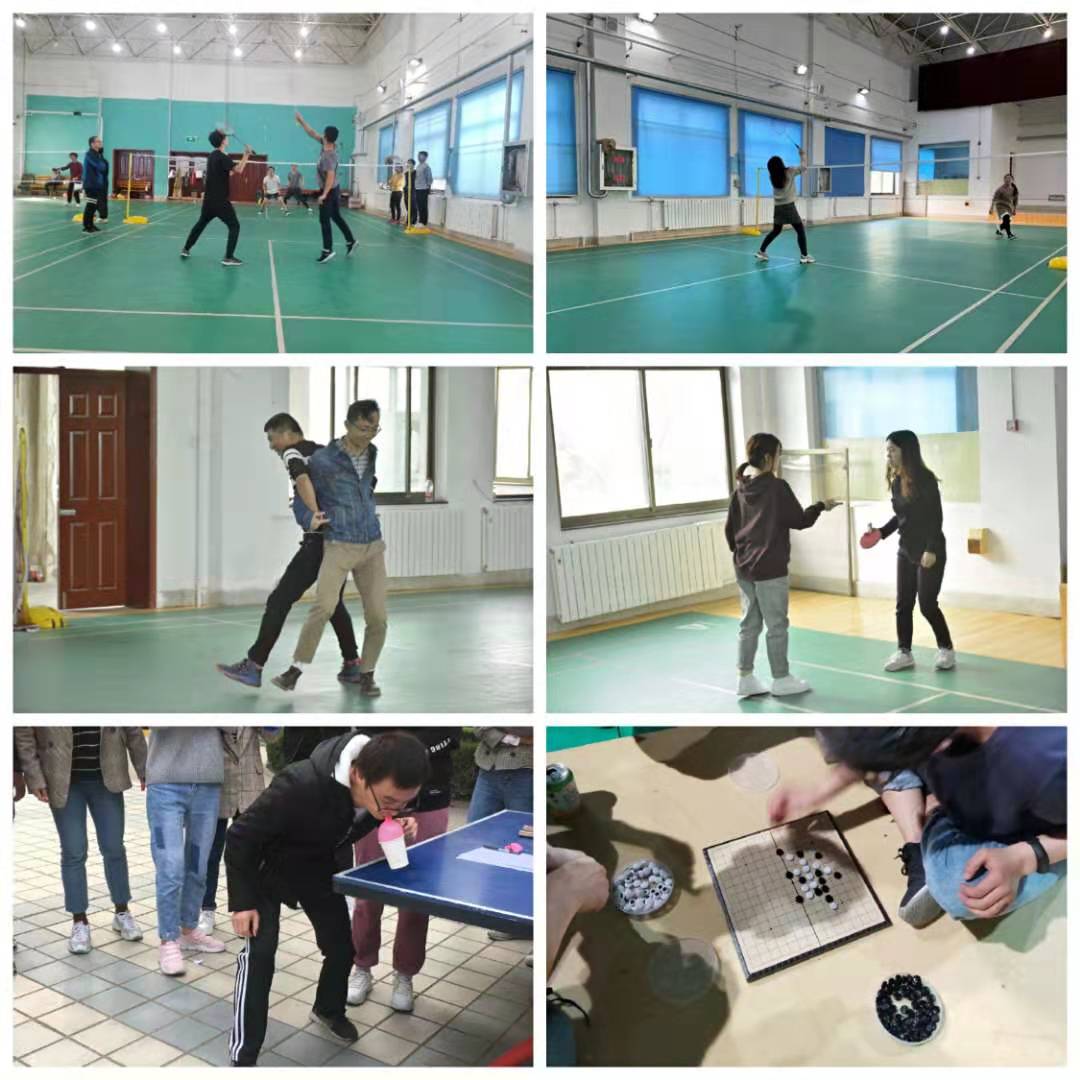 2018級(jí)碩士班舉辦了“‘羽’你同行”羽毛球比賽,共設(shè)男單、女單、男雙、混雙四個(gè)項(xiàng)目。2017級(jí)碩士班開(kāi)展了六人七足、3V3、捏鼻子轉(zhuǎn)圈直線行走接力賽、乒乓球雙打、氣球運(yùn)紙杯等多種形式的體育活動(dòng)。2018級(jí)秋博班舉辦了羽毛球、單人跳繩、飛鏢、五子棋、沙包等系列活動(dòng)。2019級(jí)春博和秋博班聯(lián)合開(kāi)展了籃球賽、趣味乒乓球、背靠背運(yùn)氣球、轉(zhuǎn)圈猜成語(yǔ)等文體活動(dòng)。蘇州研究院小組舉辦了女生單打、男生單打、男女混合雙打等形式豐富的羽毛球和乒乓球比賽。這些活動(dòng)不僅是智慧和體力的角逐,同時(shí)也彰顯了團(tuán)結(jié)和協(xié)作的完美比拼。