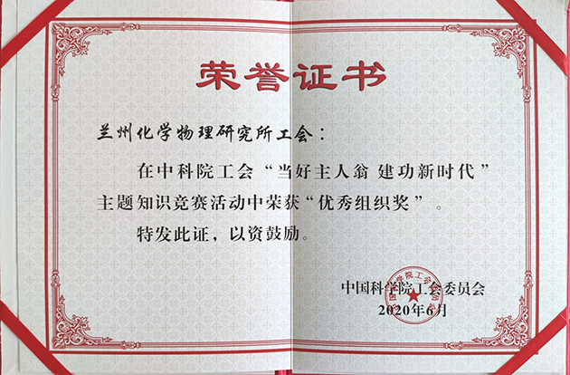 蘭州化物所榮獲2020年中科院工會知識競賽優(yōu)秀組織獎