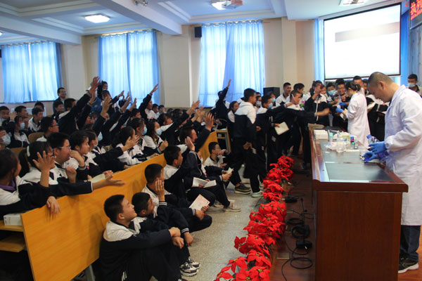 湟中一中急救知識(shí)普及現(xiàn)場(chǎng)
