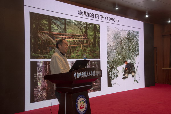 魏輔文院士以他的學術(shù)生涯為主線,講述了其自20世紀80年代開始從事大熊貓的研究工作,從最初的大熊貓野外調(diào)查、觀察,到率先將種群基因組學、宏基因組學、比較基因組學等新技術(shù)應用到大熊貓研究中,闡明了大熊貓的種群歷史、瀕危過程及演化潛力,揭示了大熊貓在食性轉(zhuǎn)換和特化歷程中如何在形態(tài)、行為、生理、遺傳和腸道微生物等方面產(chǎn)生適應性演化的規(guī)律;闡明了棲息地破碎化導致大熊貓孤立小種群崩潰的機制,推動了國家大熊貓放歸和棲息地廊道建設(shè)工程的實施。魏輔文首次提出“保護演化生物學”和“保護宏基因組學”新分支學科,并介紹了穩(wěn)定同位素分析技術(shù)和營養(yǎng)幾何模型分析等新技術(shù)和新方法。魏院士結(jié)合自己30多年在保護生物學領(lǐng)域的經(jīng)歷,鼓勵大家在科學道路上堅持思考,不斷探索,勇于創(chuàng)新。此次報告大大開拓了與會人員的學術(shù)視野,鼓舞了廣大科技人員的科研熱情。