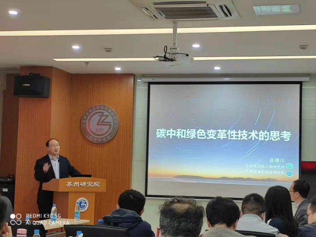 4月25日,中國科學院院士、中科院過程工程研究所張鎖江研究員應(yīng)邀訪問中國科學院蘭州化學物理研究所蘇州研究院,并作了題為“碳中和綠色變革性技術(shù)的思考”的學術(shù)報告。