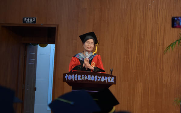 畢業(yè)典禮在莊嚴的國歌聲中拉開序幕。優(yōu)秀畢業(yè)生代表閆榮格博士首先發(fā)言。她代表全體畢業(yè)生懷著感恩的心和美好的希望,向培養(yǎng)他們的研究所和辛勤付出的導師們送上了最真摯的謝意和最美好的祝福。她說明年將是西高所建所60周年,在過去的數(shù)十年間,一批又一批科學家義無反顧地來到青海,扎根青海,克服困難,奉獻高原,為科學前沿、國家需求和地方發(fā)展做出了重大貢獻,培養(yǎng)了一大批杰出的人才,很榮幸作為西高所的一份子,很榮幸,這里是大家的精神家園。在此出發(fā),胸懷夢想不懈奮斗!