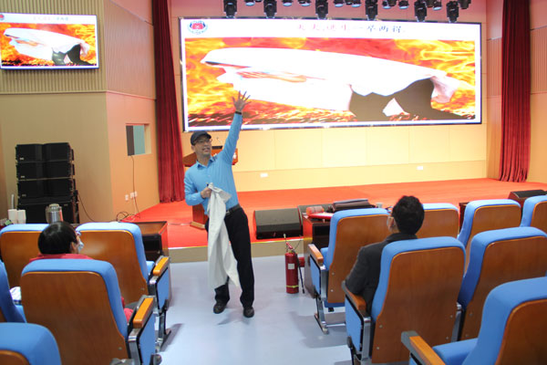 王尚華從構(gòu)筑社會消防安全“防火墻”工程提出的消防“三懂三提示四個能力”建設(shè)入手開展了消防安全講授?!叭奔炊馂?zāi)預(yù)防知識,懂單位防火的措施,懂撲救火災(zāi)的方法?!叭崾尽?,既提示公眾所在場所火災(zāi)危險性,提示公眾所在場所安全逃生路線、安全出口的具體位置、遇到火災(zāi)等緊急情況如何正確逃生、自救,提示公眾所在場所內(nèi)滅火器、逃生設(shè)備器材具體放置位置和使用方法。“四個能力”,即檢查和整改火災(zāi)隱患能力,撲救初期火災(zāi)能力,組織引導(dǎo)人員疏散逃生能力,消防安全知識宣傳教育培訓(xùn)能力。王尚華用幽默風(fēng)趣的語言,結(jié)合大量的現(xiàn)實案例,給大家上了一堂生動活潑的安全教育課,深受參會職工和學(xué)生的歡迎。